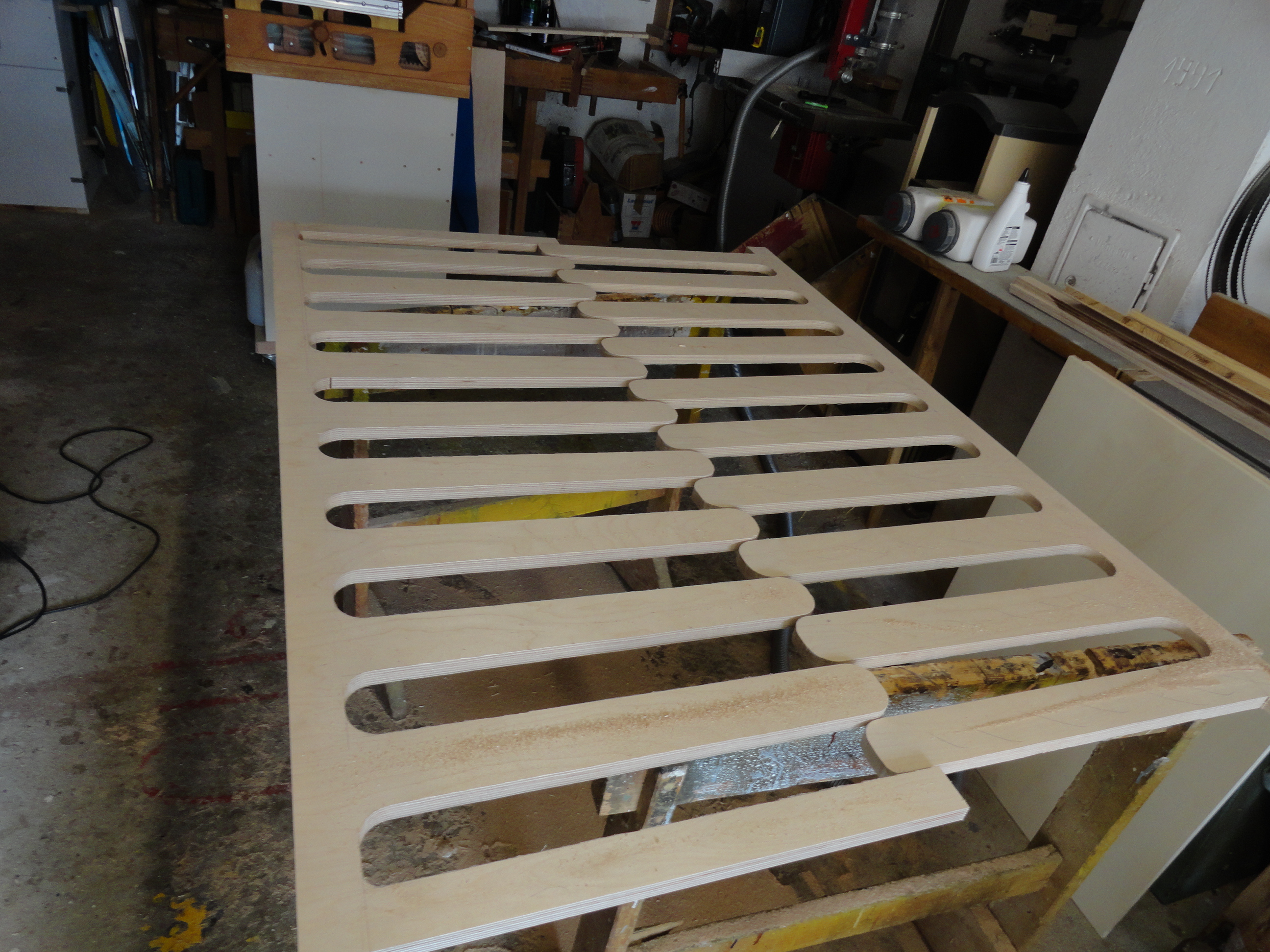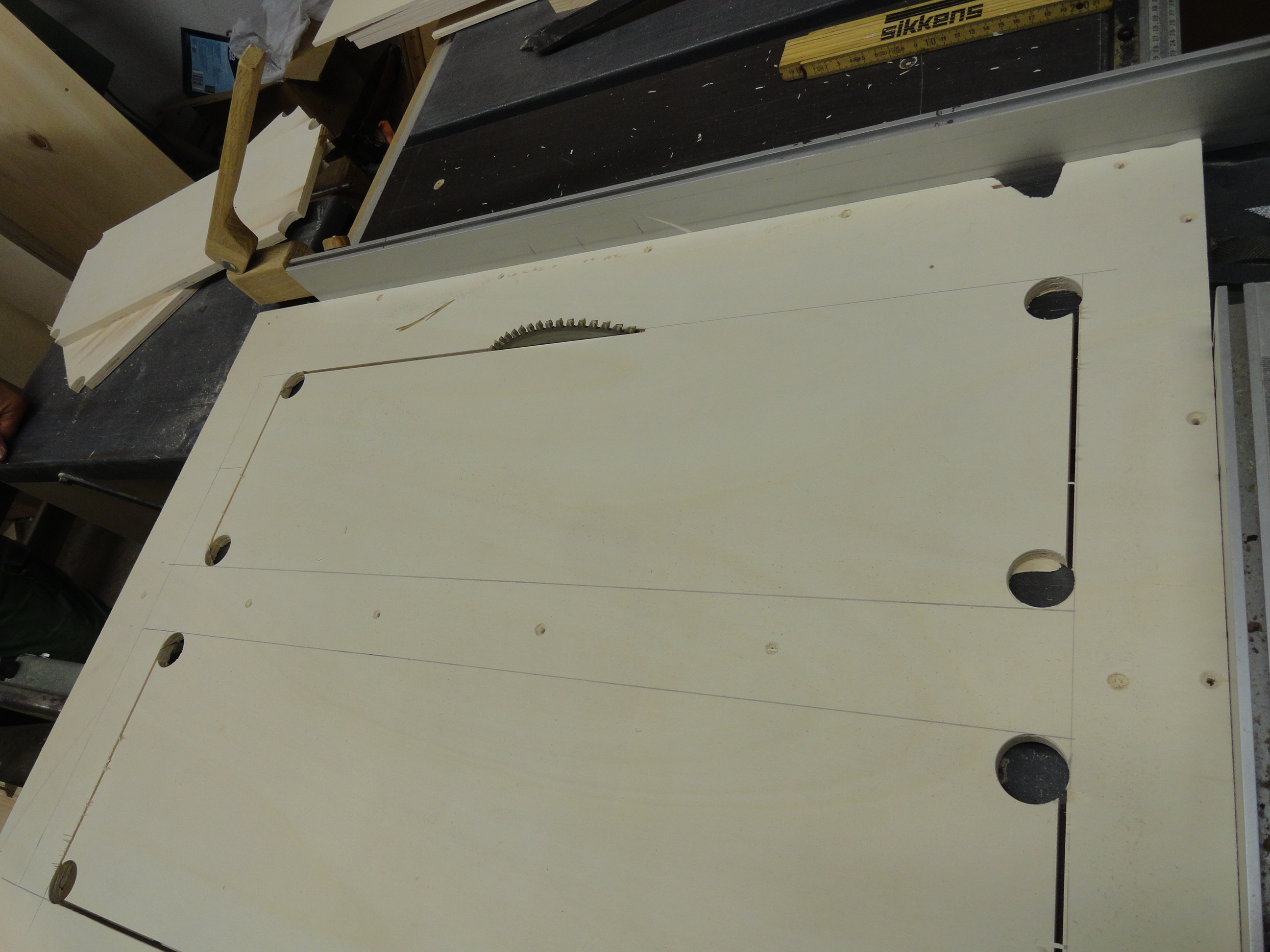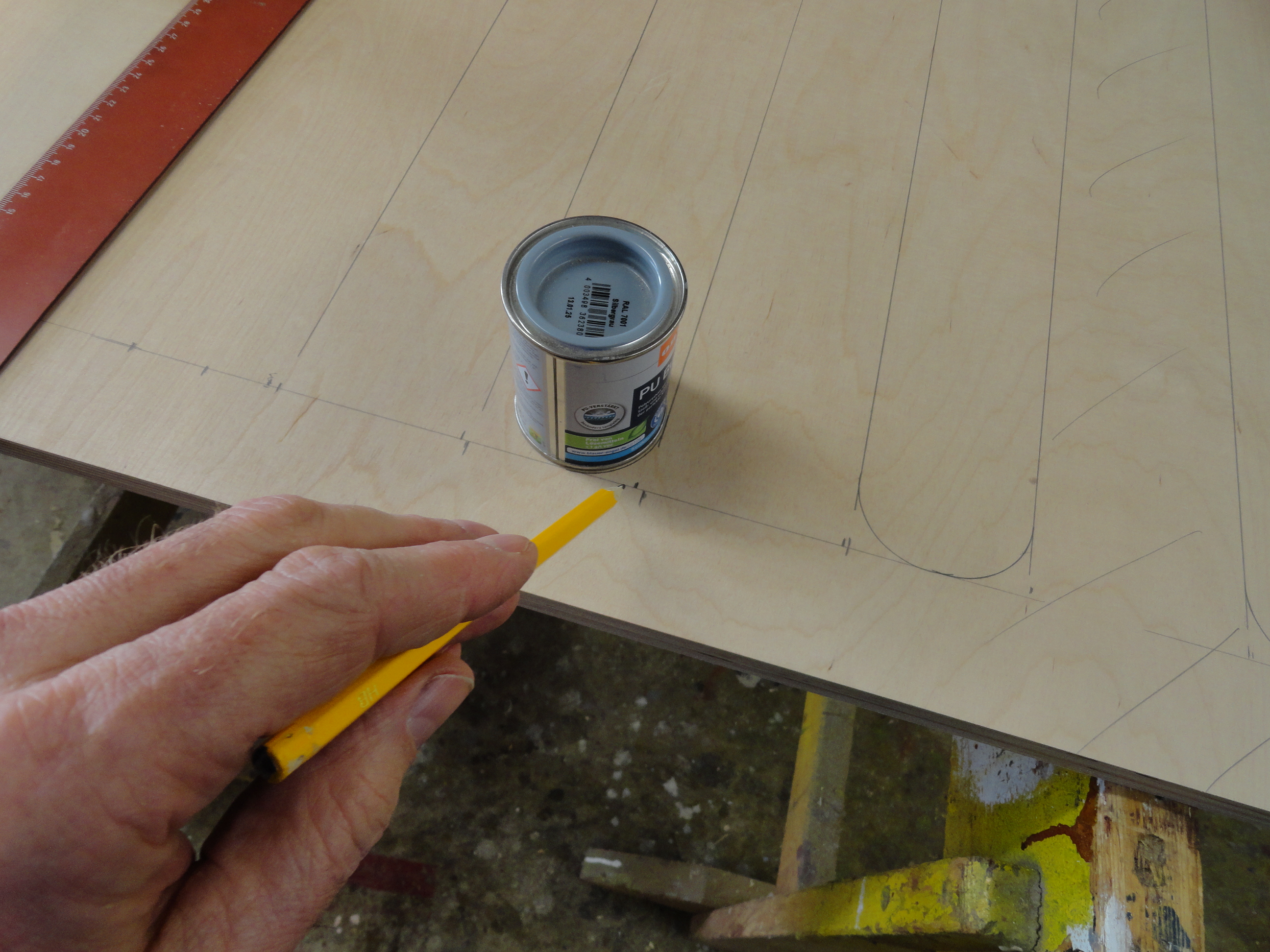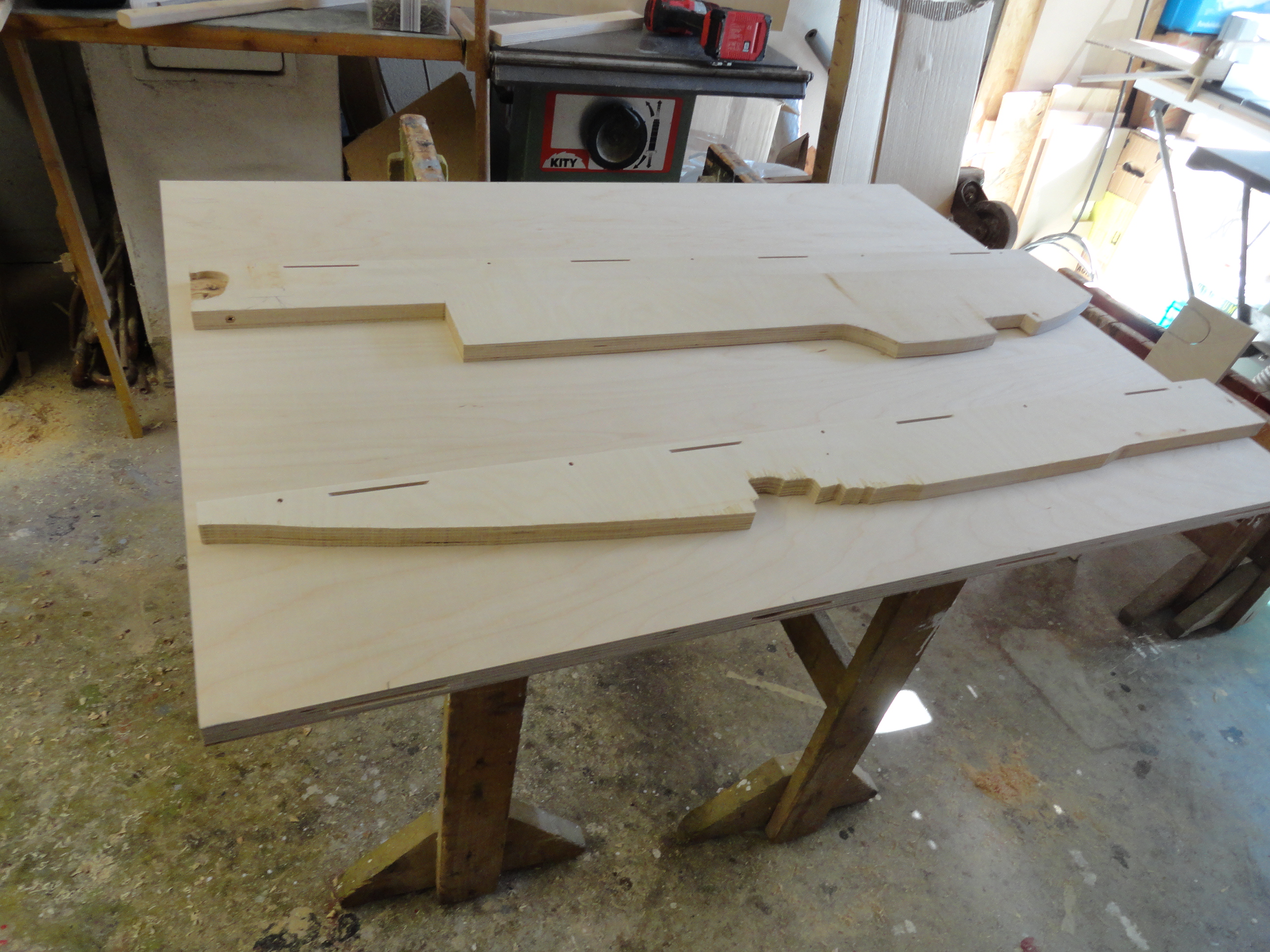 Speziell hier, für diesen Bauplan wurden alle benötigten Sperrholz, Tischler und Multiplex-Platten im Baumarkt nach den mitgelieferten Holzlisten abgearbeitet und zugesägt.