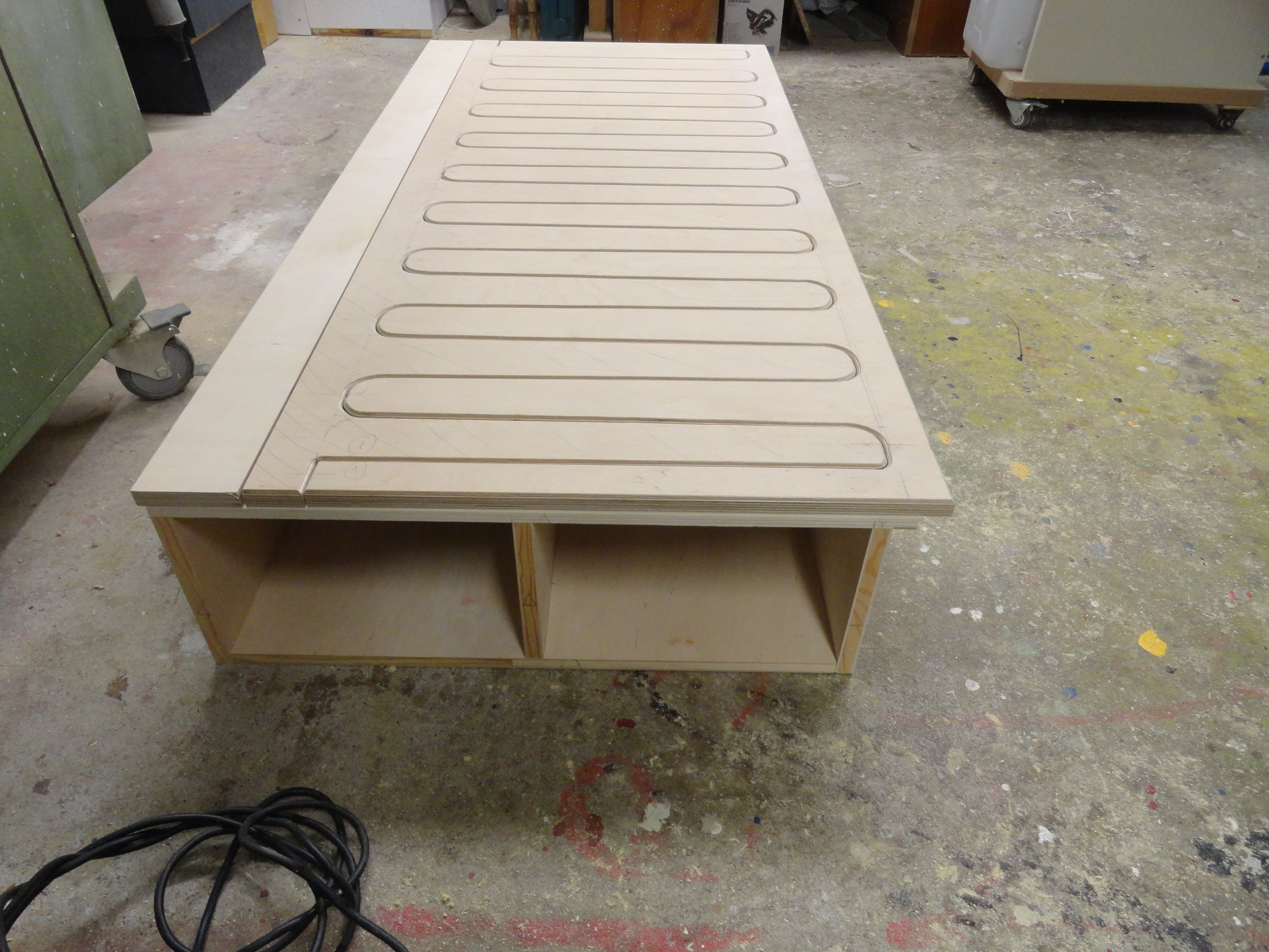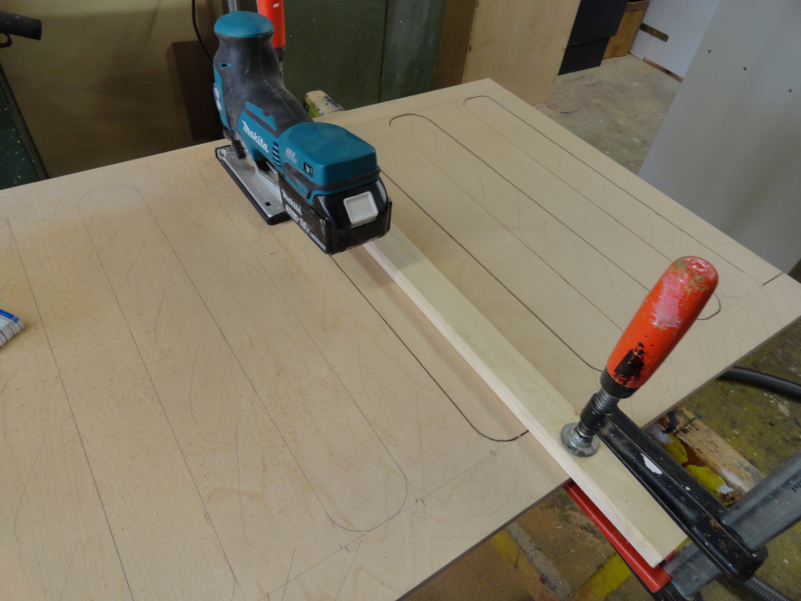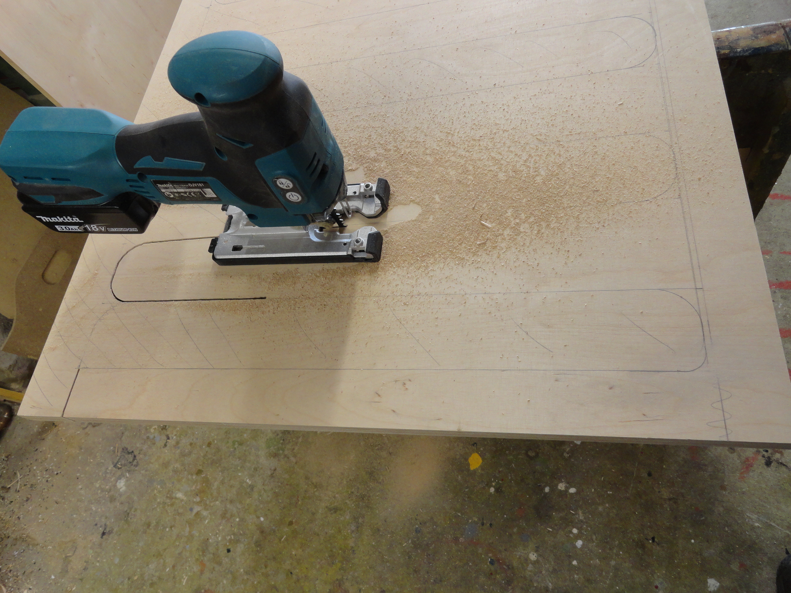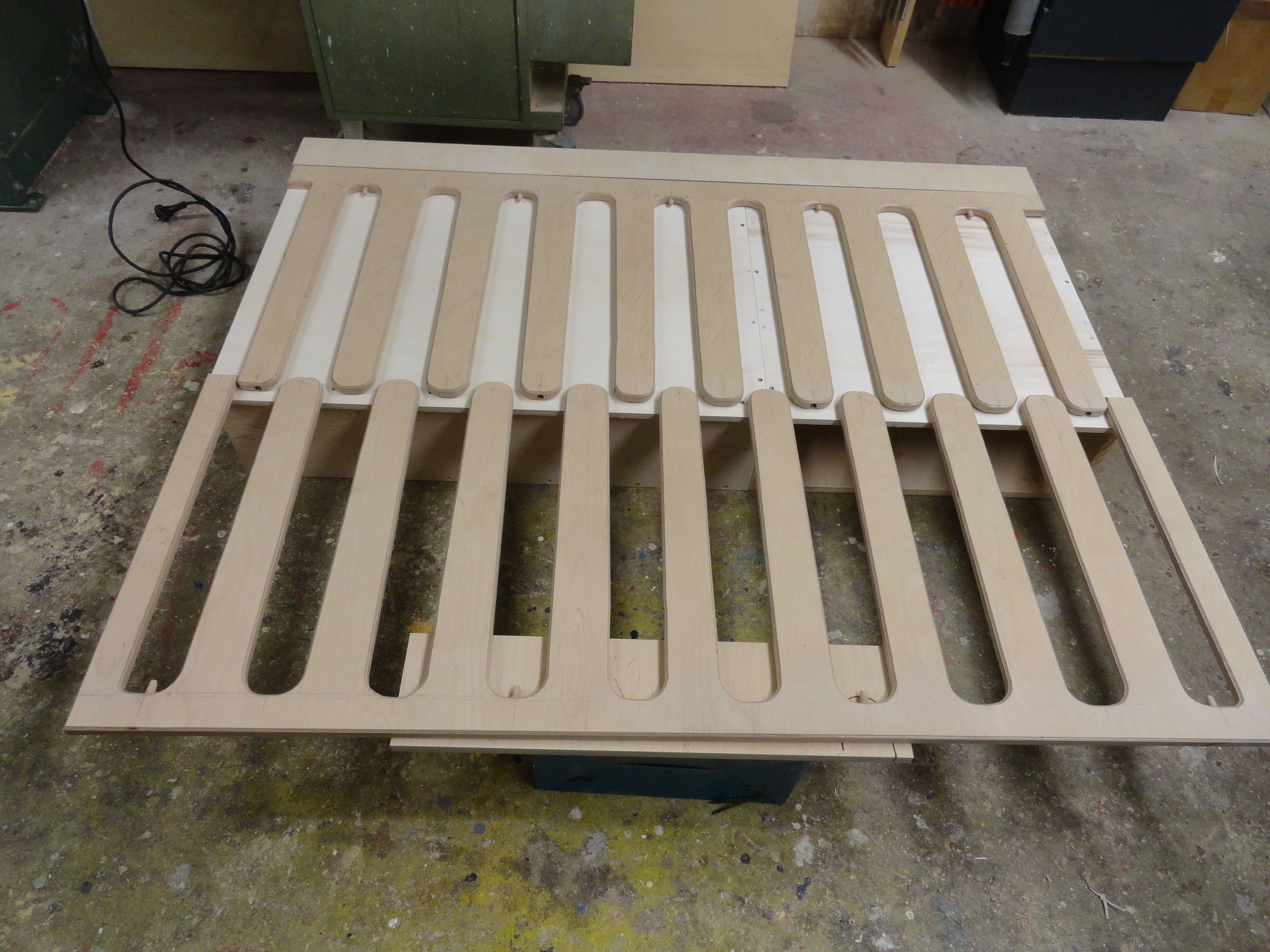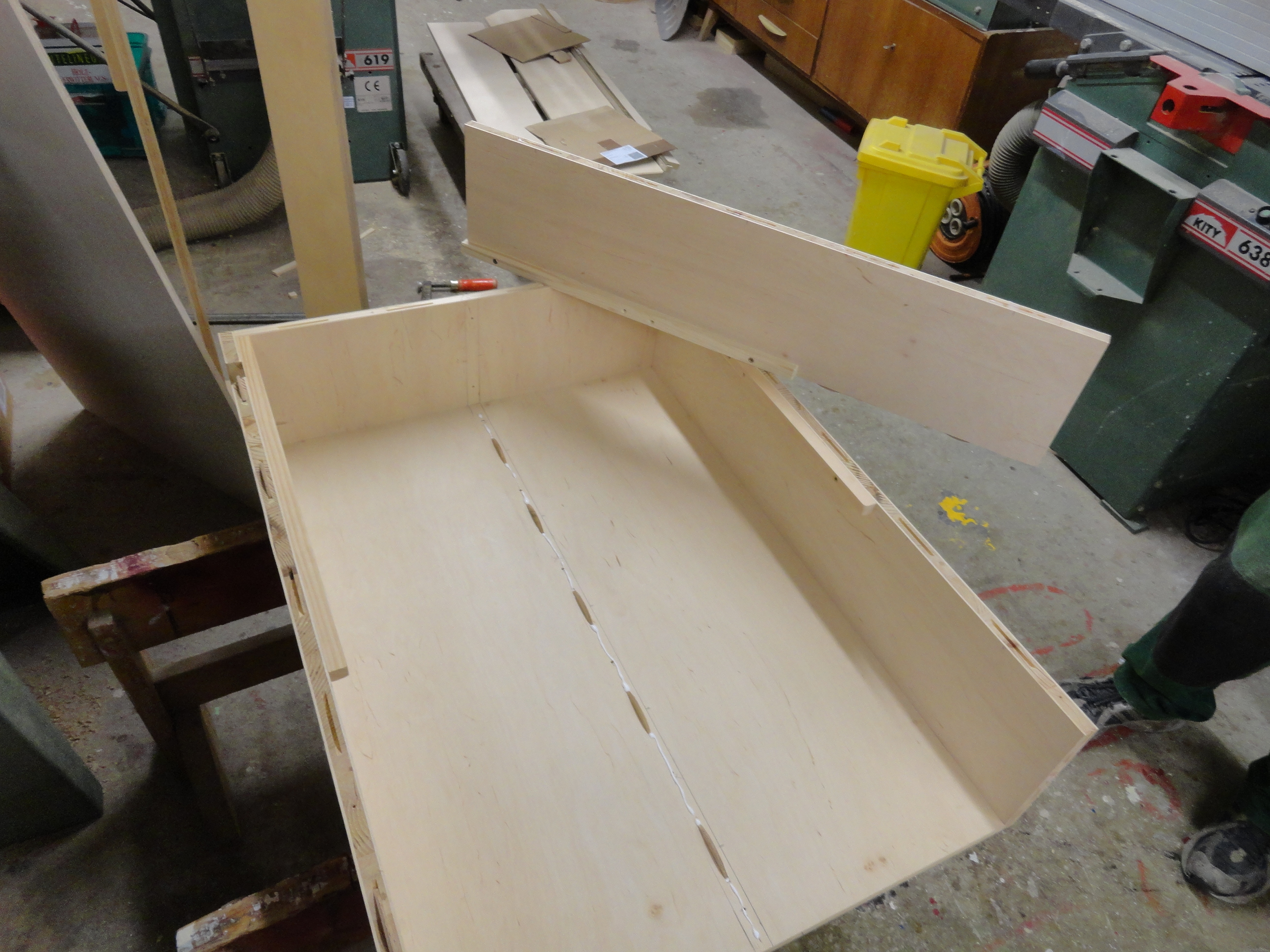 Speziell hier, für diesen Bauplan wurden alle benötigten Sperrholz, Tischler und Multiplex-Platten im Baumarkt nach den mitgelieferten Holzlisten abgearbeitet und zugesägt.