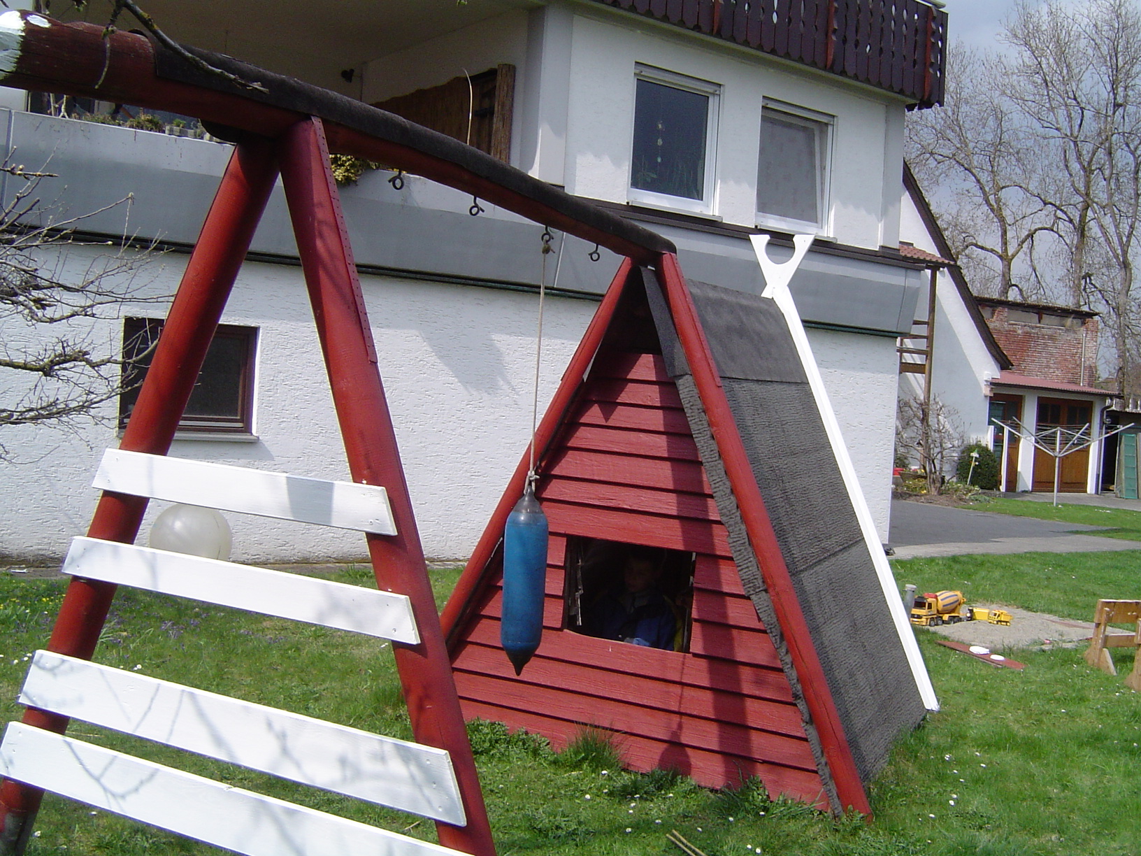 Sie sehen hier einen Bauplan mit sehr ausführlicher Baubeschreibung, der es jedem möglich macht ein sehr schönes, einzigartiges Kinderspielhaus selber zu bauen. Es wird in einer speziell dafür entwickelten Bauanleitung alles in Wort und farbigen Bildern ausführlich beschrieben. Jeder Bauabschnitt enthält die wichtigsten Bilder im Bauplan, und zusätzlich noch viele Bilder zu jeder Bauphase wie zB. Dach, Seitenwände, Türe, Fenster auf einer CD, um sich die Sache in aller Ruhe am PC vorab anschauen zu können. Der Bauplan besteht aus zwei Teilen, den Bau der Terrasse, und den Bau des Spielhauses. Natürlich können auch beide Teile unabhängig voneinander gebaut werden, da das Spielhaus auch ohne die Terrasse sehr gut aussieht, und trotzdem voll funktionsfähig ist. Die Bauanleitung ist in Bauabschnitte gegliedert, deren farbige Bilder die Beschreibung unterstützen. Jeder Bauabschnitt enthält die zum Bauen wichtigen Bilder in der Baubeschreibung, und zusätzlich noch viele Bilder auf der mitgelieferten CD, die ebenfalls in dieser Weise gegliedert sind. Ich hatte mir als Aufgabe gestellt ein Spielhaus zu bauen, dass zum einen nicht im Baumarkt zu bekommen ist, optisch was besonderes darstellt, aber trotzdem relativ einfach zu bauen ist.Als Vorbild dazu dienten mir die schwedischen Holzhäuser. Es sollte so groß sein, dass auch ein Erwachsener darin stehen kann, und drei Kinder Platz zum Übernachten finden.Maße:Grundriss Terrasse: 3 x 3 m Höhe: 75 cm (Oberkante Fussboden)Haus: 2 x 2 m Höhe: Innen 2,10 m bis zum Firstbalken! Gesamthöhe Haus mit Terrasse: ca. 3,00 mBaukosten:Terrasse: ca.500 Euro in Hochdruck imprägniertem Holz ca.250 Euro in naturbelassenem Holz (Komplett mit Stahlhülsen für die Pfosten)Spielhaus: ca. 400 Euro Das gesamte Material ist im Baumarkt zu bekommen!Es ist zu bedenken, dass sie auf die Beschreibung eines Berufsfremden bieten, und ich dafür keinerlei Garantie, oder Haftung übernehme. Auch nicht für Schäden oder Verletzungen die auf die Verwendung des Bauplans zurückzuführen sind.Achtung!!! Dieser Bauplan ist urheberrechtlich geschützt! Kopieren und Weiterverkaufen verboten! Zuwiderhandlungen werden zur Anzeige gebracht!
